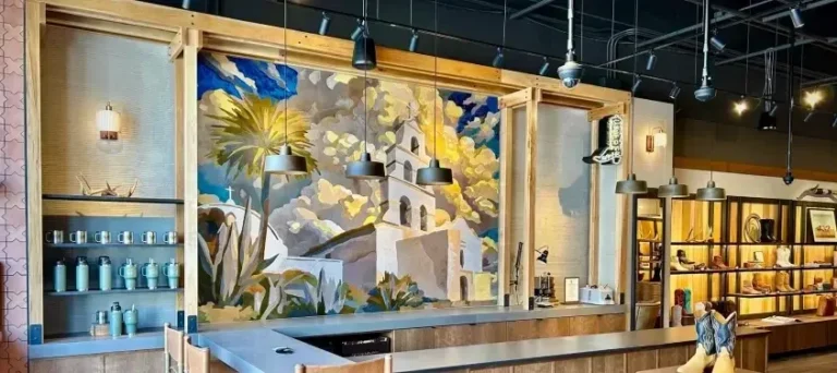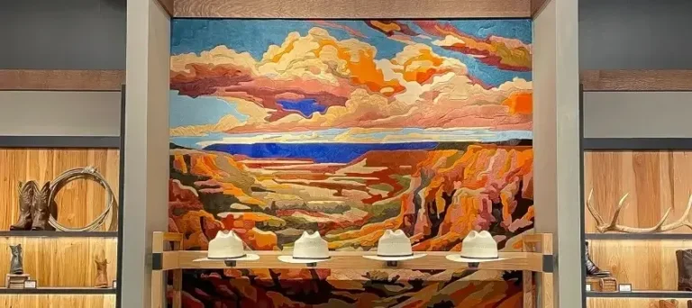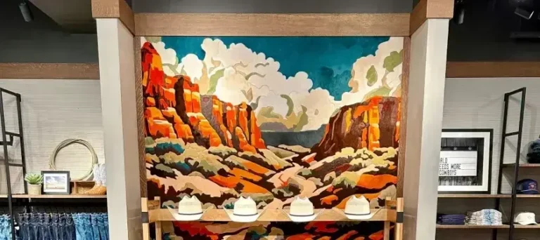 Our branded partnership with Tecovas started with their flagship store in Austin, Texas and has since expanded to every location in the United States. Our Hide Art provides a unique opportunity to tie the West into Tecovas’ retail stores, combining vivid southwestern colors with the unique medium of cowhide to tell the Tecovas story.